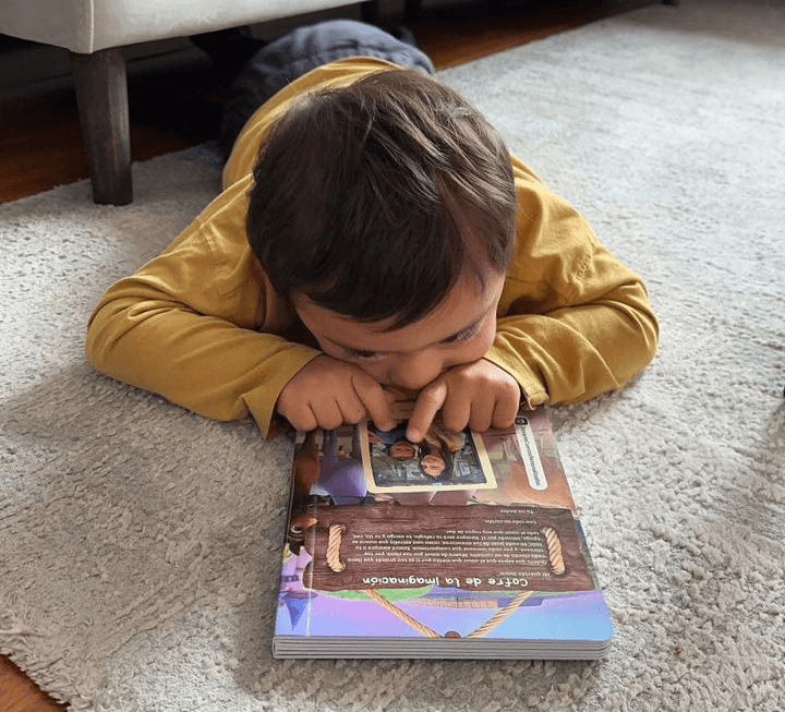 Nuestros libros vienen en dos tamaños según la categoría 21cms x 15cms o 32cms x 23cms, y un grosor de 1,5cms, todos los libros contienen 12 páginas (6 hojas), plastificadas y muy gruesas, lo que los hace muy resistente para la manipulación de los infantes y perdurables a través de los años. Por eso, casi siempre nuestros clientes confían y dejan que la sorpresa llegue al recibir el libro. Pero, si prefieres dar tu visto bueno antes de imprimir, puedes agregar nuestro Plan de Revisión, con un valor adicional de $40.000 COP. Este servicio está disponible para las categorías Cofre de la Imaginación, Multicuento Espejo Mágico y Espejo Mágico.