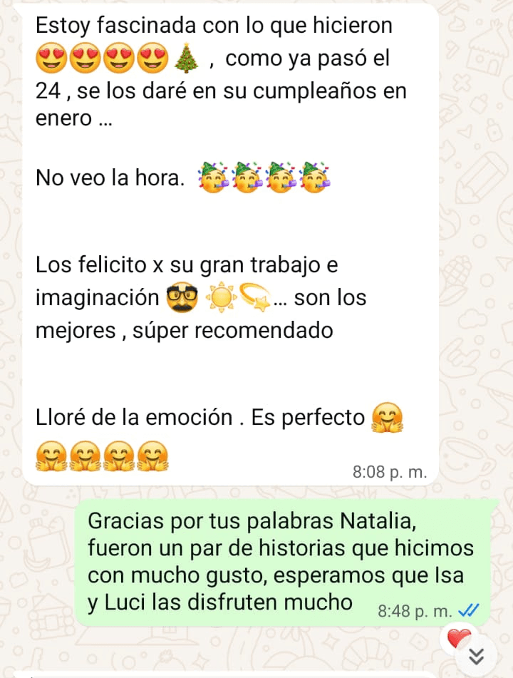 Somos una empresa que crea cuentos personalizados para niños y adultos que conectan generaciones. Cada historia está escrita con amor para hacer sonreír, emocionar y recordar.